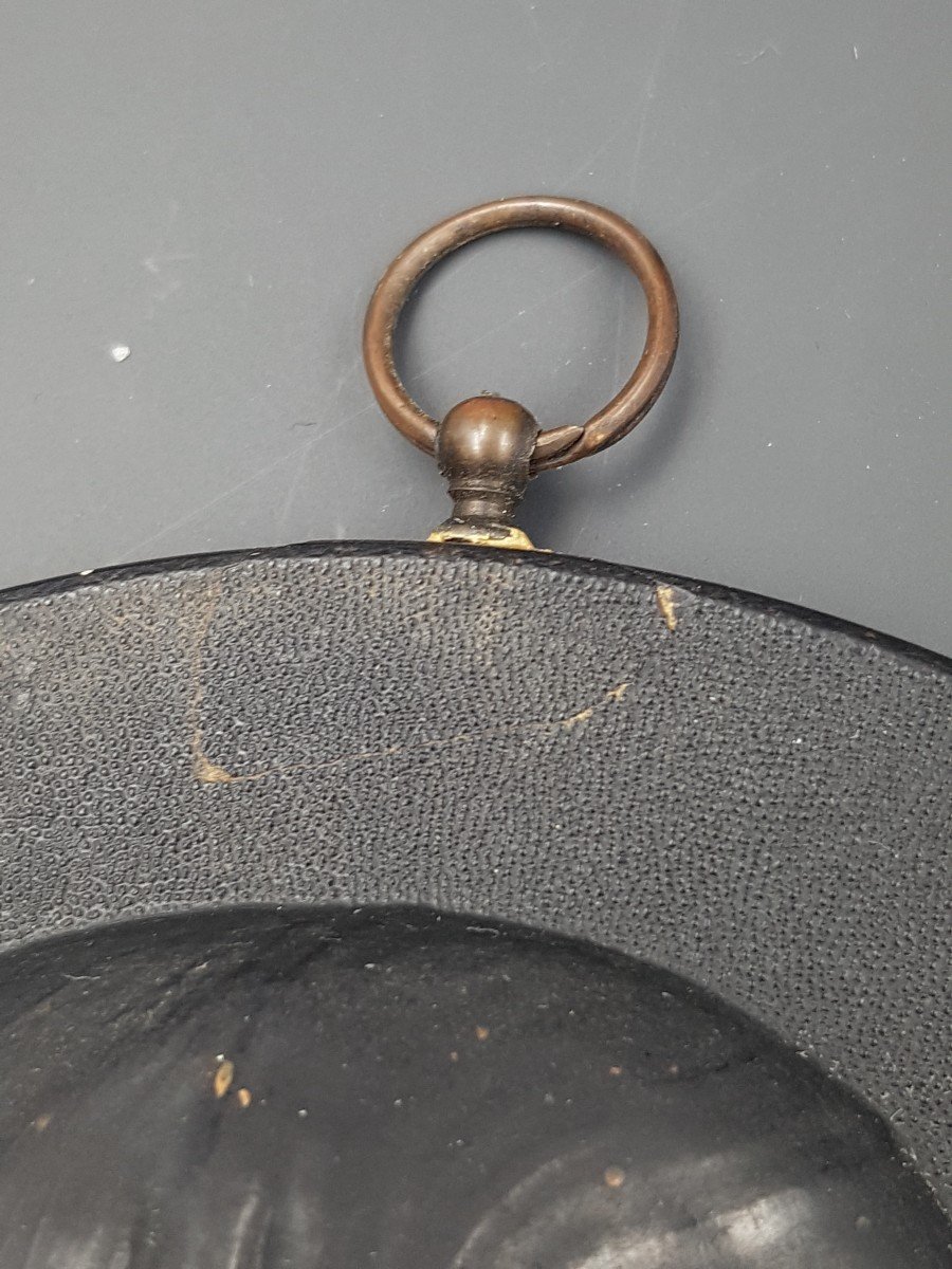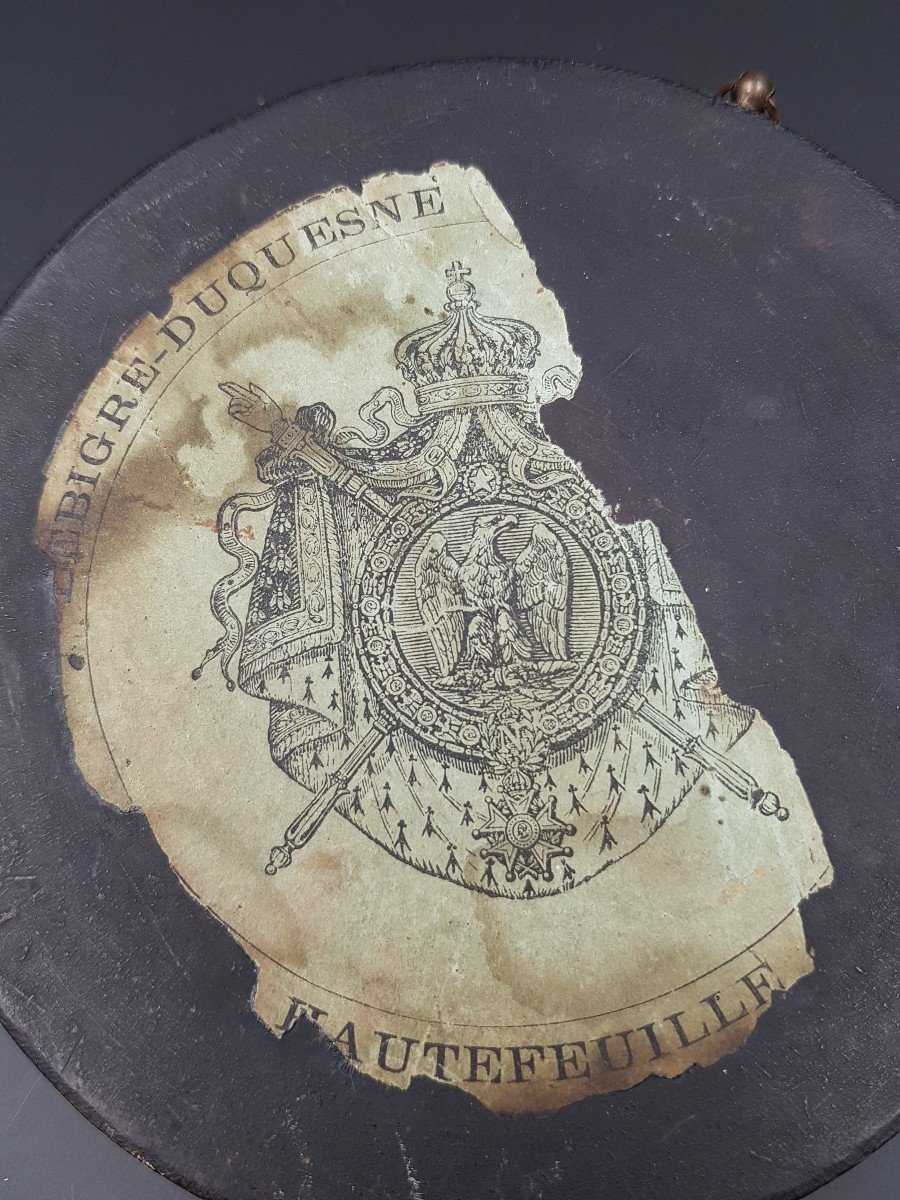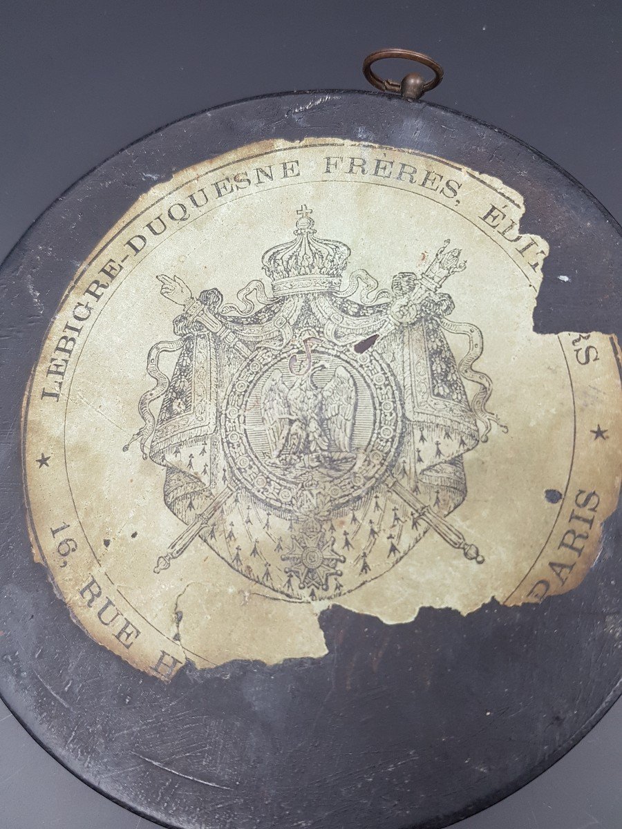it is extremely rare to find the manufacturer's label for these pressed woods. Napoleon III period slot at the top in the center for the pricese medallion